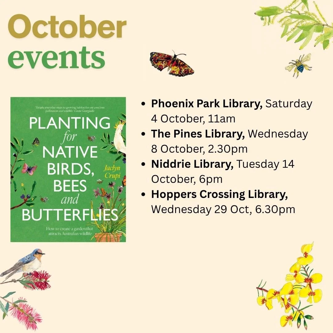 OCTOBER EVENTS Phoenix Park Library, Saturday 4 October, 11am The Pines Library, Wednesday 8 October, 2.30pm Belgrave Library, Thursday 6 November, 2pm Niddrie Library, Tuesday 14 October, 6pm Hoppers Crossing Library, Wednesday 29 Oct, 6.30pm