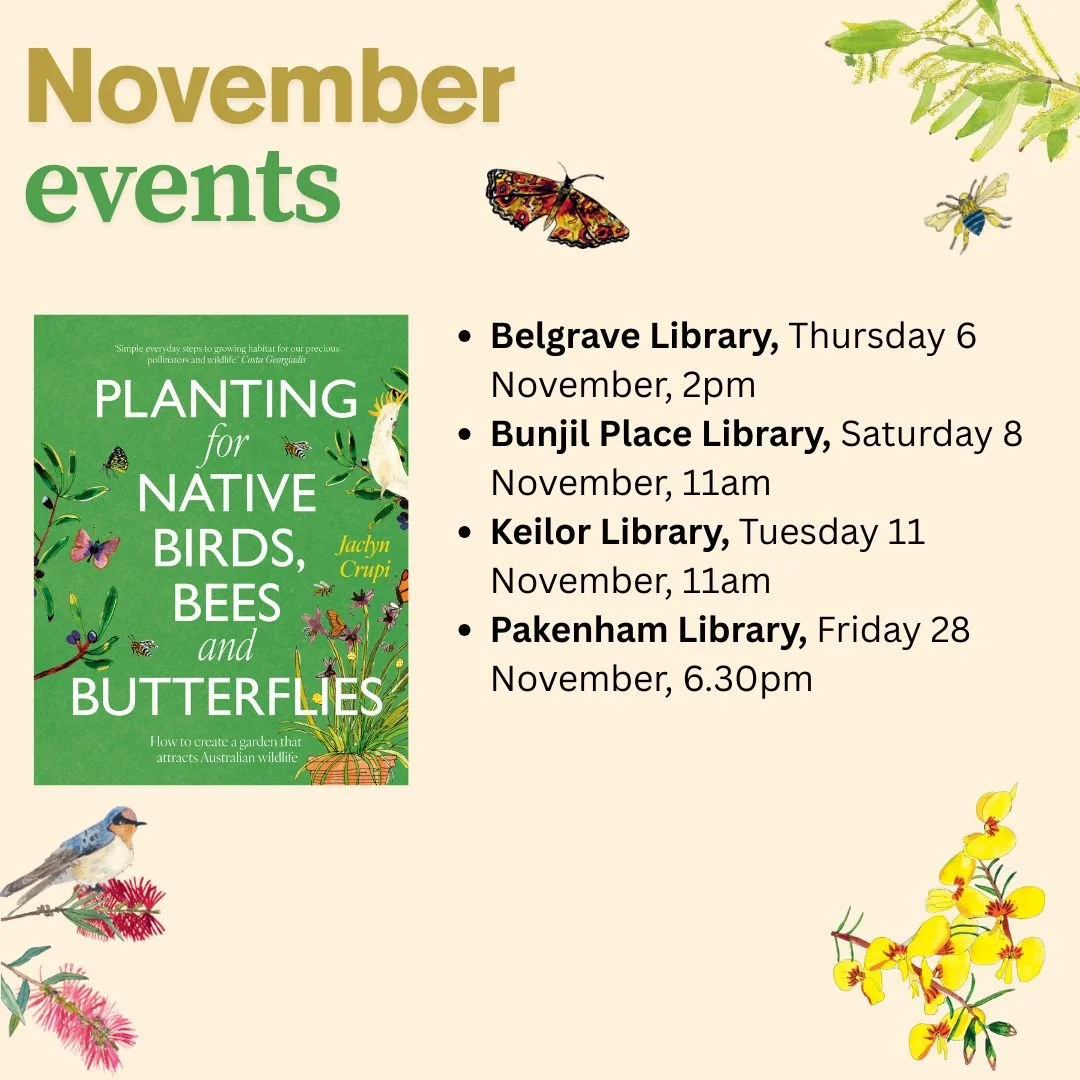 NOVEMBER EVENTS Belgrave Library, Thursday 6 November, 2pm Bunjil Place Library, Saturday 8 November, 11am Keilor Library, Tuesday 11 November, 11am Pakenham Library, Friday 28 November, 6.30pm